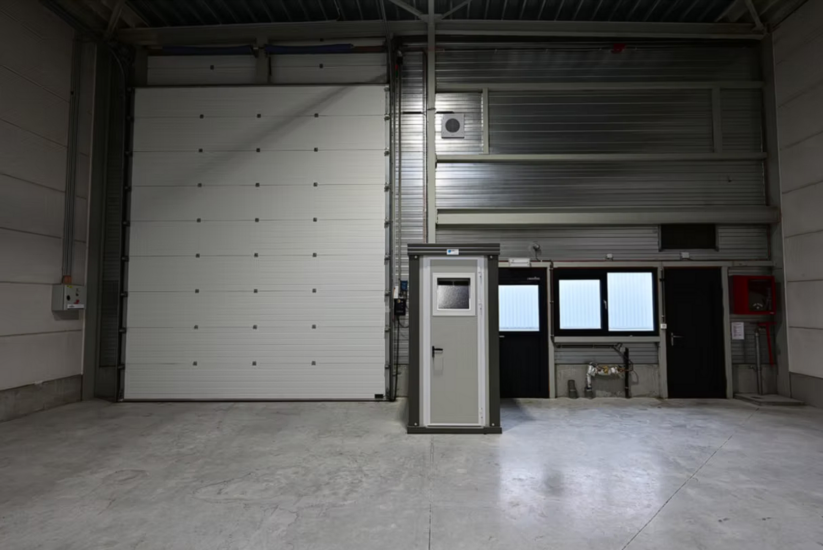 Dit magazijn heeft een oppervlakte van ca. 500m² met voldoende parkeermogelijkheden en is voorzien van 1 gelijkvloerse sectionaalpoort. Het magazijn heeft een vrije hoogte van ca. 6,30 m en nutsvoorzieningen zoals water en elektriciteit (230/400V) zijn eveneens aanwezig.