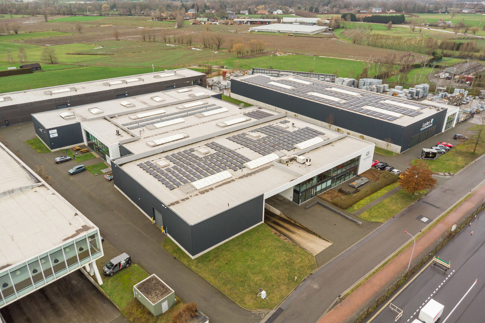 Rondom het gebouw bevinden zich bovendien 26 privatieve parkeerplaatsen, wat het gebruiksgemak en de bereikbaarheid aanzienlijk verhoogt. Het dak is uitgerust met 200 zonnepanelen, wat bijdraagt aan een energiezuinige en toekomstgerichte bedrijfsvoering.