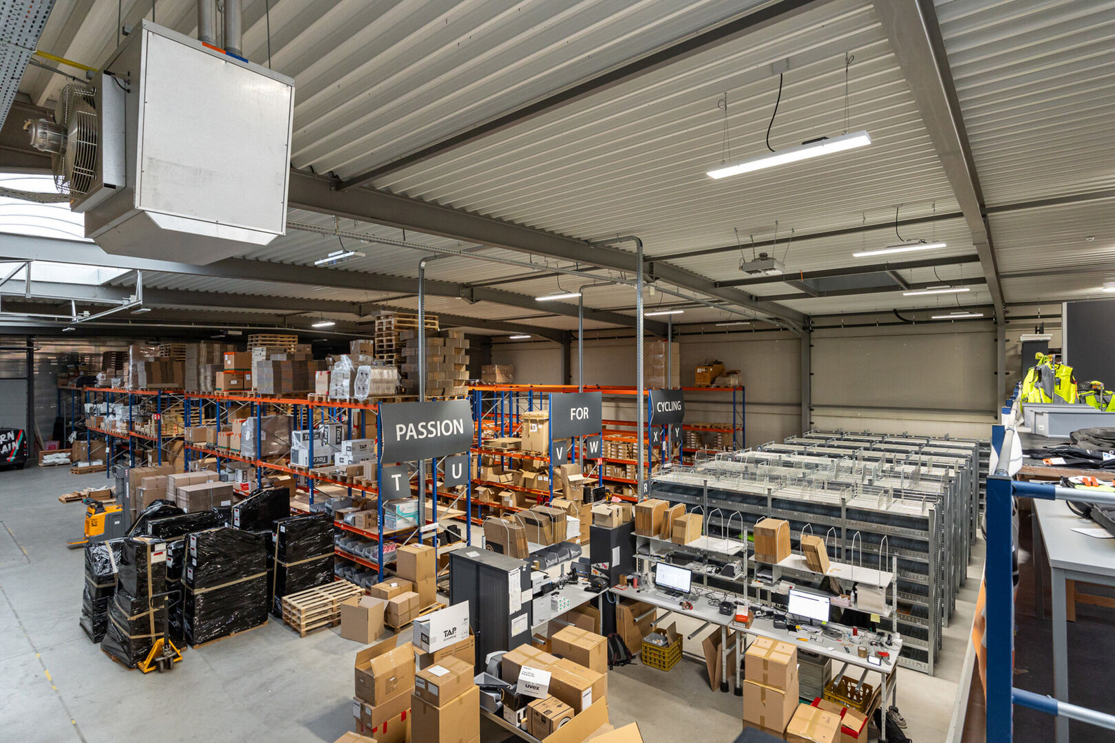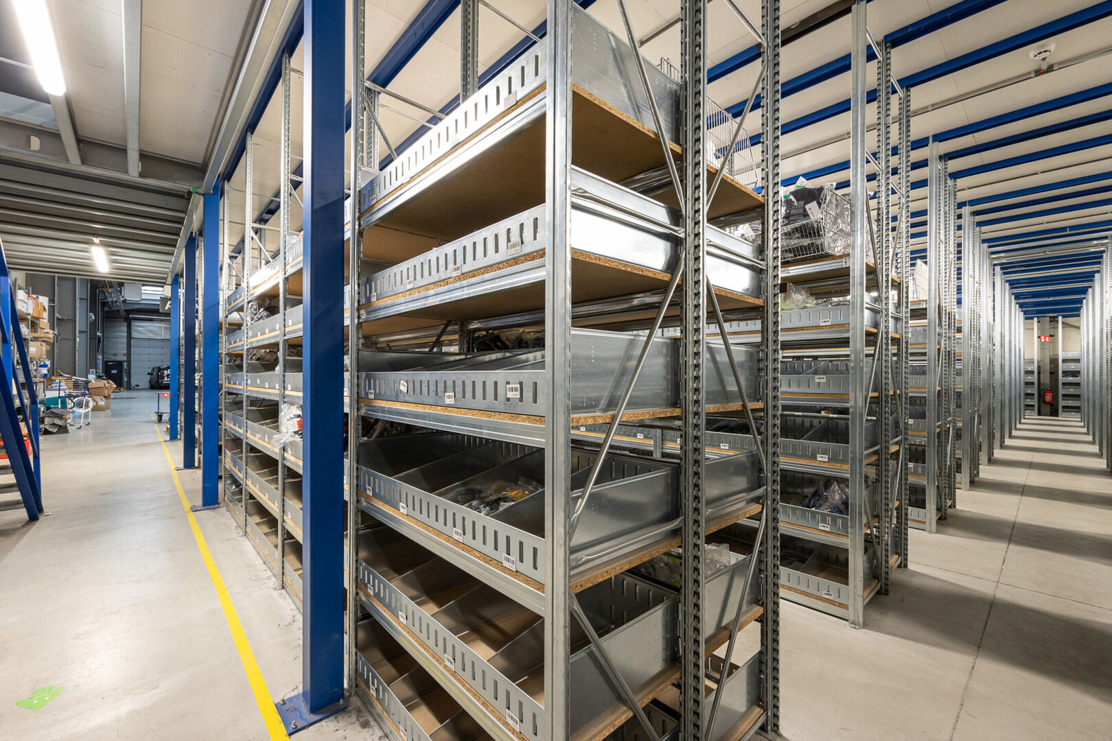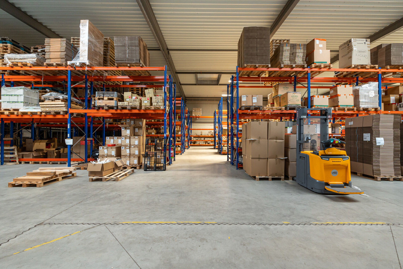 Het gebouw bestaat uit 1.772 m² magazijnruimte met een vrije hoogte van circa 7 meter, aangevuld met een mezzanine van 400 m² die bijkomende opslag- of werkmogelijkheden biedt. Voor een vlotte logistieke werking zijn er een laad- en loskade en twee gelijkvloerse sectionaalpoorten aanwezig.
