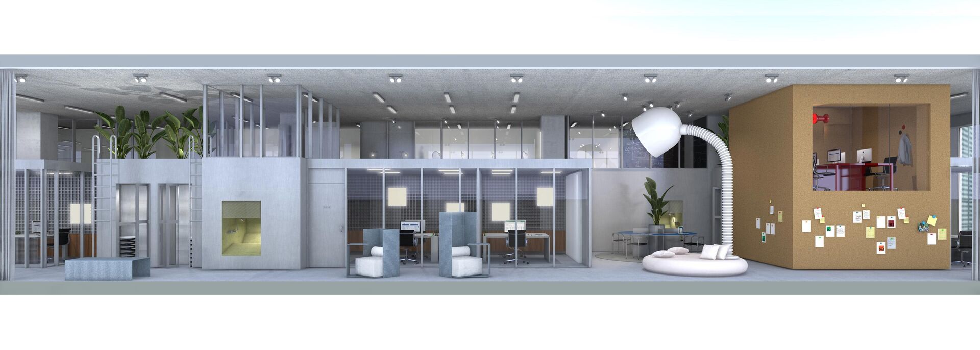 Er zijn keuzemogelijkheden voor een 'flex office', een 'fixed office' of een 'private office'.