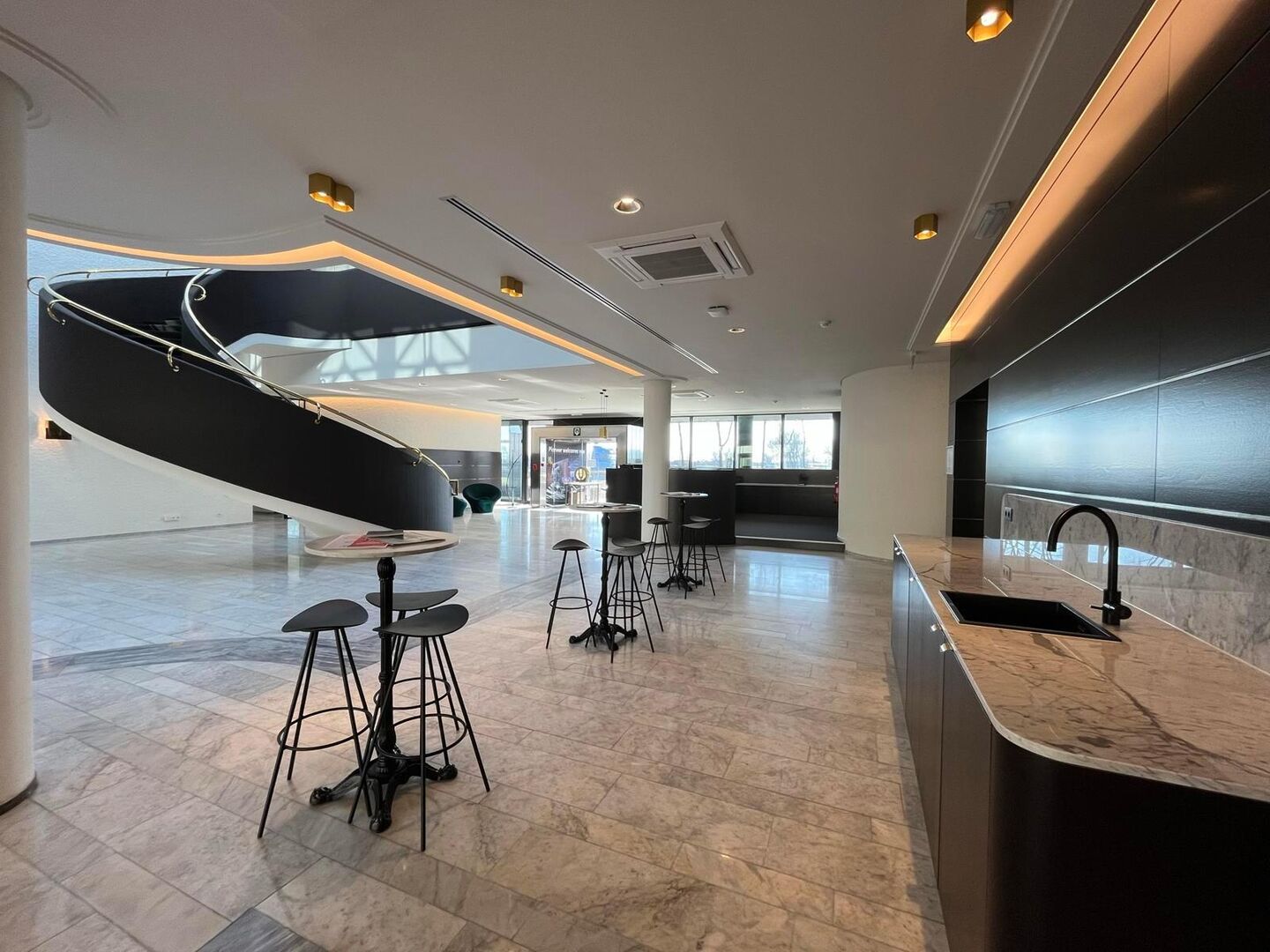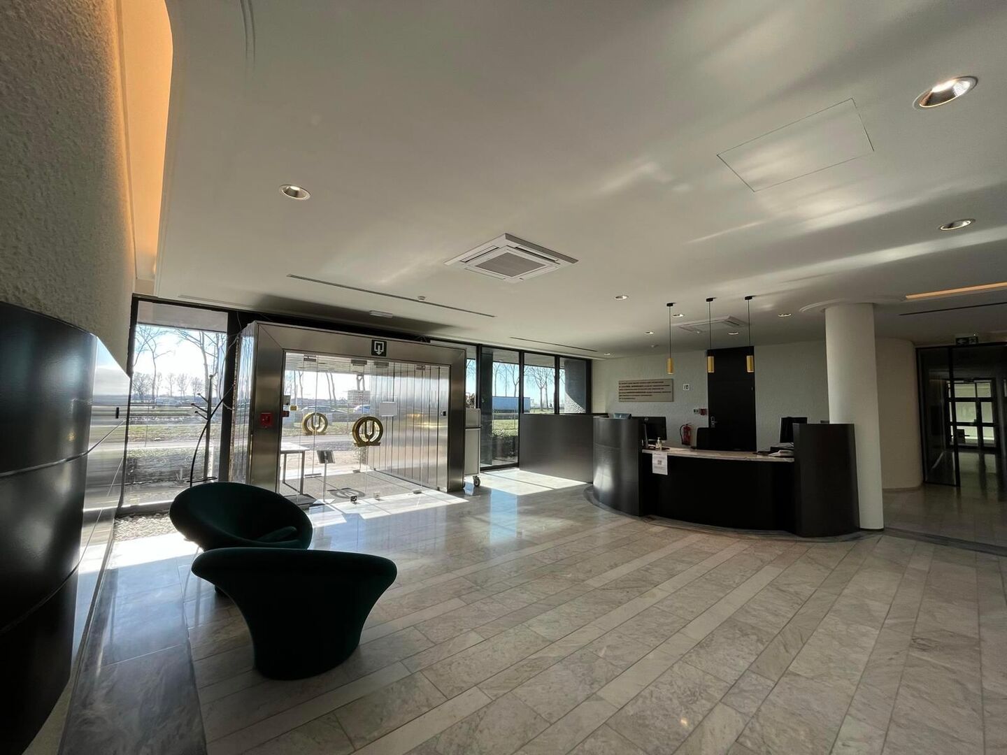 Dit onlangs gerenoveerde gebouw biedt een privatieve ruimte aan tot ca. 913 m², met daarnaast ook een grote gemeenschappelijke ruimte van ca. 1.425 m². Het gebruik van laatstvermelde ruimte is inbegrepen in de maandelijkse lasten.