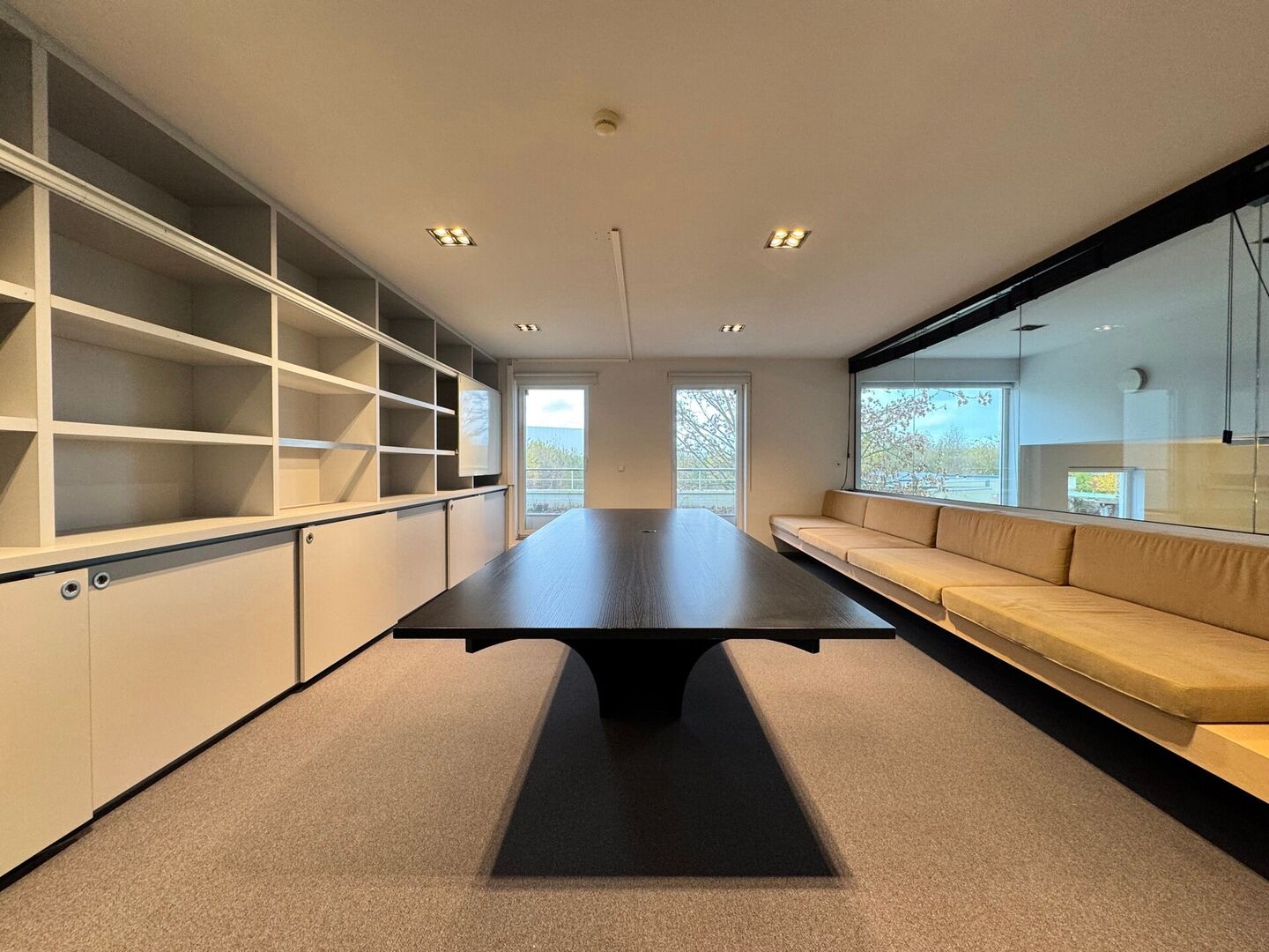 De eerste verdieping beschikt over meerdere kantoorruimtes en een ruime vergaderruimte met uitzicht op het groen aan de achterzijde.