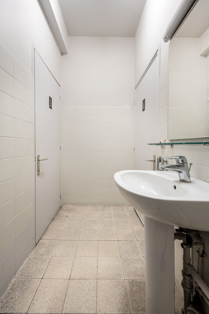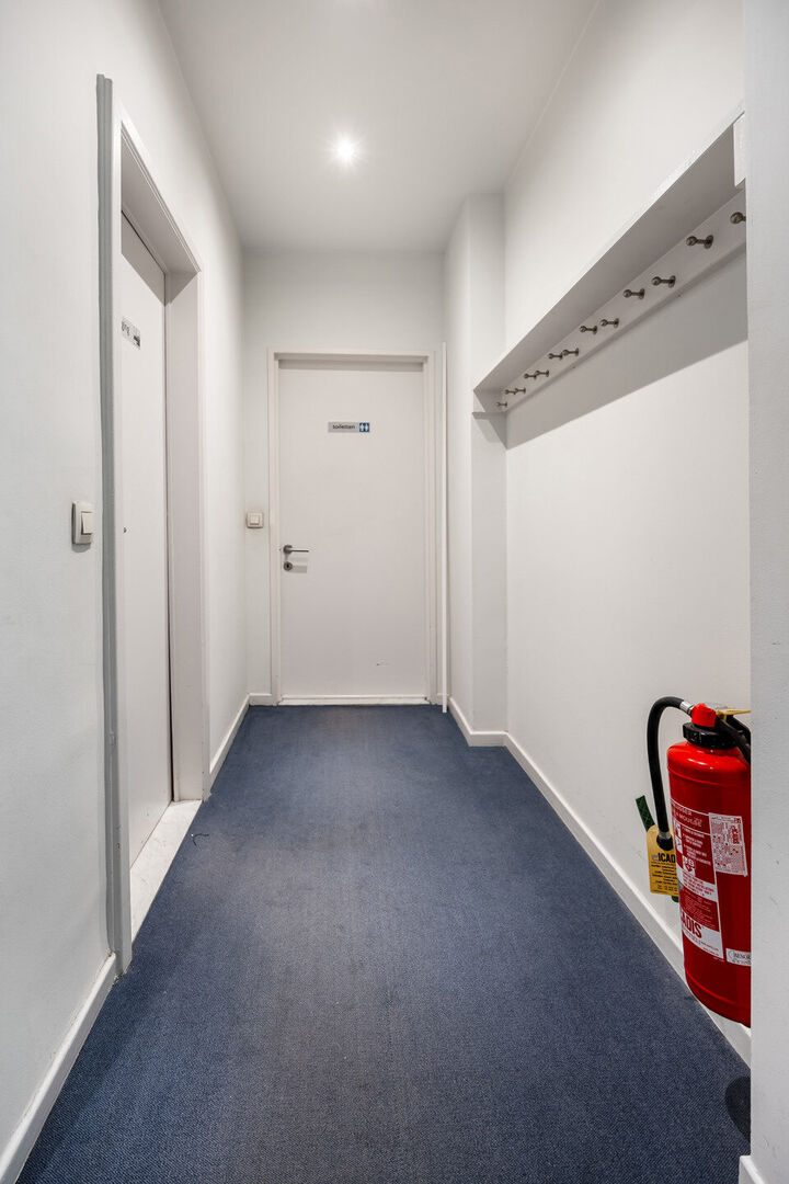 Het handelspand is ingedeeld in verschillende ruimtes/ kantoren/ burelen door verschillende raampartijen en is multifunctioneel.
