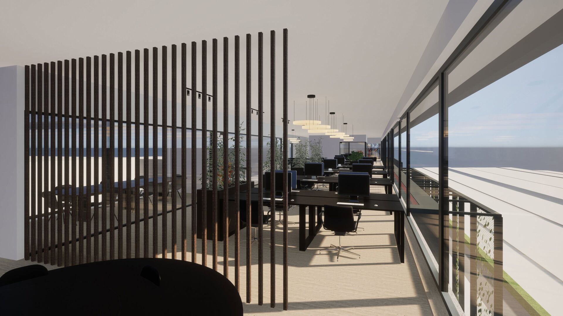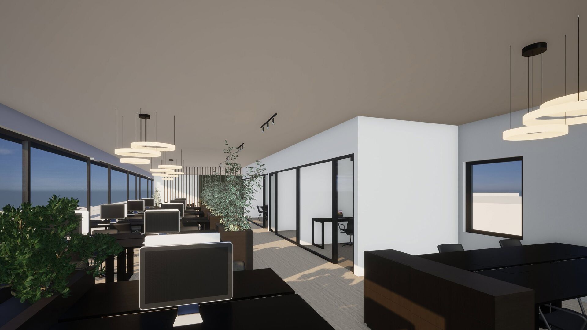 De kantoorruimtes worden in casco staat opgeleverd met aandacht voor duurzaamheid. Verwarming en koeling worden verzorgd door middel van een warmtepomp, en er is tevens een klimaatplafond voorzien. De gemeenschappelijke ruimtes worden volledig afgewerkt met het oog op lage emissie en duurzaamheid.