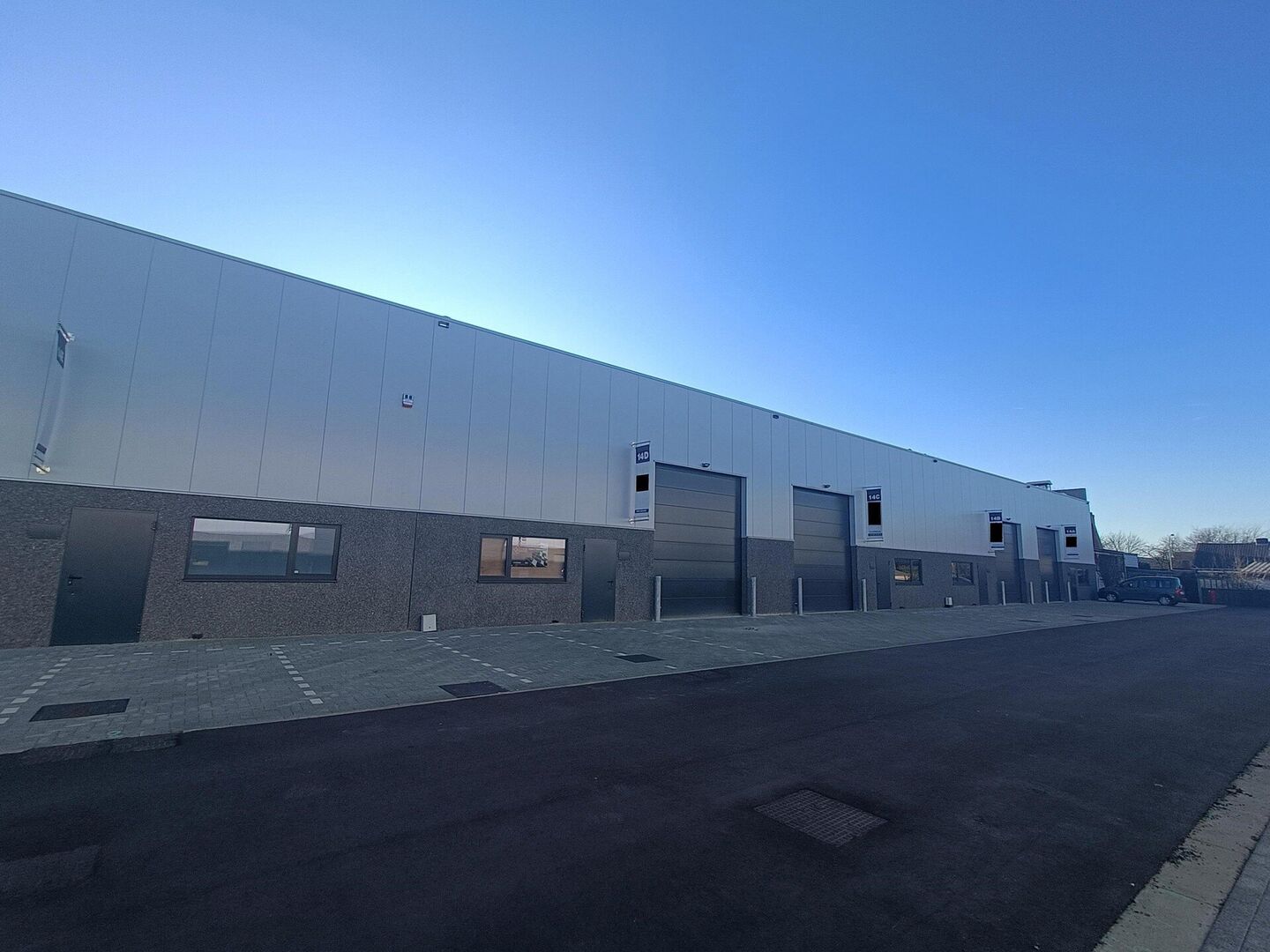 Dankzij de sectionale poort van 4 x 4,5 meter en de vlotte toegang voor bestelwagens zijn de units perfect geschikt voor opslag, productie of logistieke activiteiten.