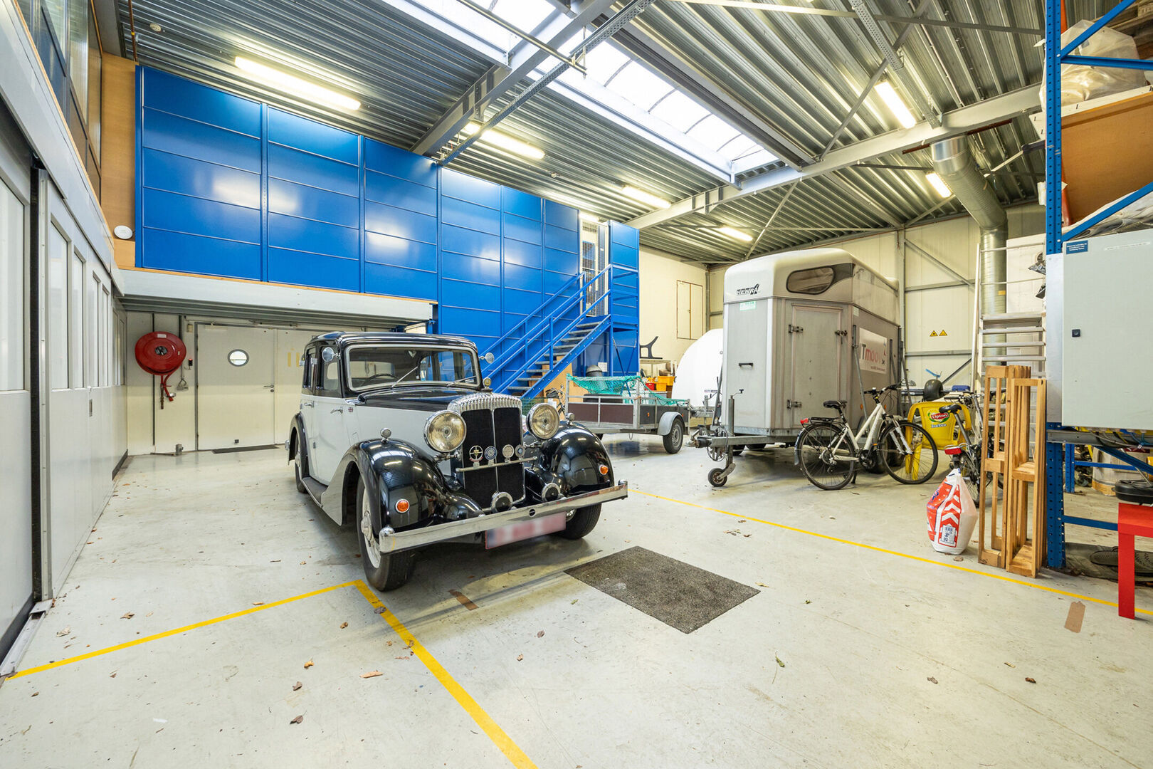 Daarnaast omvat het ook een afzonderlijke kantoorruimte van ca. 100 m², voorzien van kitchenette en sanitair.