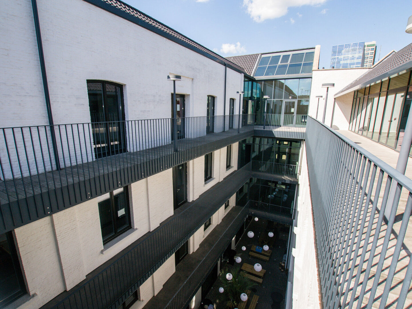 Het gebouw biedt aangename en lichtrijke werkruimtes met een mix van landschapskantoren, afzonderlijke kantoren en vergaderzalen. Dankzij de grondige renovatie werd het pand aangepast aan de noden van moderne bedrijven, met behoud van zijn unieke industriële uitstraling.